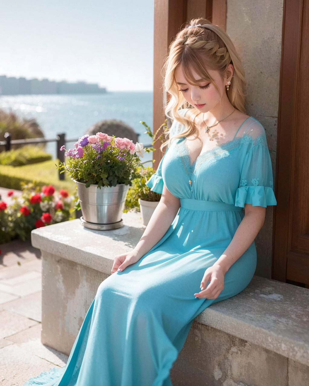 As I gaze upon the watercolor painting of the Gravia model, I am transported to a world of ethereal beauty. The soft pastel colors of her dress blend seamlessly with the dreamy landscape that surrounds her. The loose curls of her hair seem to dance in the gentle breeze, and her serene expression conveys a sense of inner peace. The vibrant flowers that dot the painting add a pop of color to the scene, while the soft clouds above create a feeling of tranquility and calmness. The overall effect is one of pure serenity and grace, as though the model is at one with the world around her. As I reflect on this painting, I am struck by the power of art to transport us to another world. It is a reminder that sometimes we need to step away from the chaos of our daily lives and immerse ourselves in something beautiful and peaceful.
