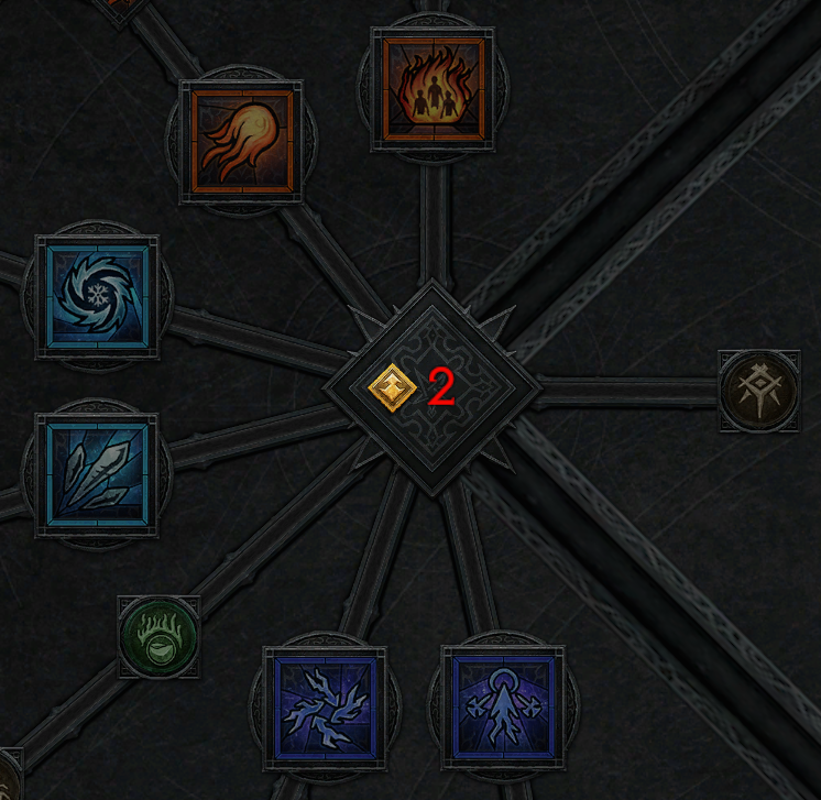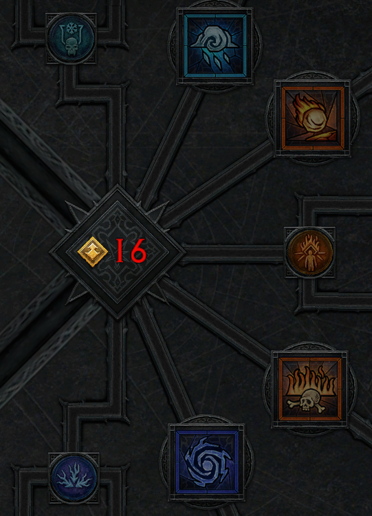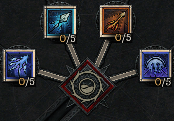 기본 스킬의 강화된 버전으로 강한 데미지와 광역의 적을 공격하며 취약 효과가 있는 스킬과 패시브 2개로 구성되어 있습니다. 소각, 화염구, 얼음 보주, 얼음 파편, 연쇄 번개, 번개 줄기, 파멸(패시브), 강력한 수호(패시브)