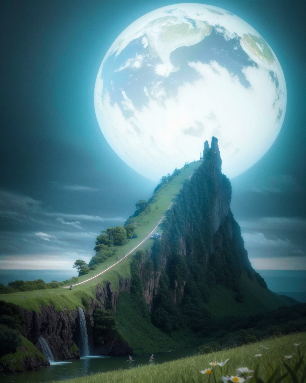 bamboo, bamboo_forest, bush, castle, circle, cloud, cloudy_sky, crescent_moon, earth_\(planet\), egasumi, field, flower, forest, full_moon, grass, hill, horizon, lake, landscape, moon, moonlight, mountain, mountainous_horizon, nature, night, night_sky, no_humans, outdoors, planet, red_moon, river, scarlet_devil_mansion, scenery, sky, sun, water, white_flower, Cinematic, Hyper-detailed, insane details, Beautifully color graded, Unreal Engine, DOF, Super-Resolution, Megapixel, Cinematic Lightning, Anti-Aliasing, FKAA, TXAA, RTX, SSAO, Post Processing, Post Production, Tone Mapping, CGI, VFX, SFX, Insanely detailed and intricate, Hyper maximalist, Hyper realistic, Volumetric, Photorealistic, ultra photoreal, ultra-detailed, intricate details, 8K, Super detailed, Full color, Volumetric lightning, HDR, Realistic, Unreal Engine, 16K, Sharp focus Negative prompt: lowres, (worst quality:1.5), (low quality:1.5), strabismus, body out of frame, signature, watermark, username, artist name, (nude:1.5), Abdominal muscles, (Muscles:1.2), monochrome, greyscale, (hat), (cap), mutant, bad fingers, bad anatomy, bad hands, missing fingers, extra digit, fewer digits, Steps: 52, Sampler: DPM++ SDE Karras, CFG scale: 25, Seed: 83657873, Size: 512x640, Model hash: a11eab470a, Model: chillout+Basil_mix, Denoising strength: 0.45, Hires upscale: 2, Hires upscaler: ESRGAN_4x, Dynamic thresholding enabled: True, Mimic scale: 17, Threshold percentile: 96.95, Mimic mode: Half Cosine Up, Mimic scale minimum: 7, CFG mode: Half Cosine Up, CFG scale minimum: 7