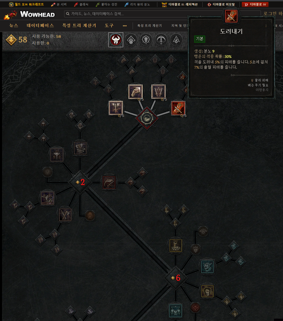 3. 디아블로 4 스킬 계산기 : wowhead.com (https://www.wowhead.com/diablo-4/ko/skill-tree-calc)