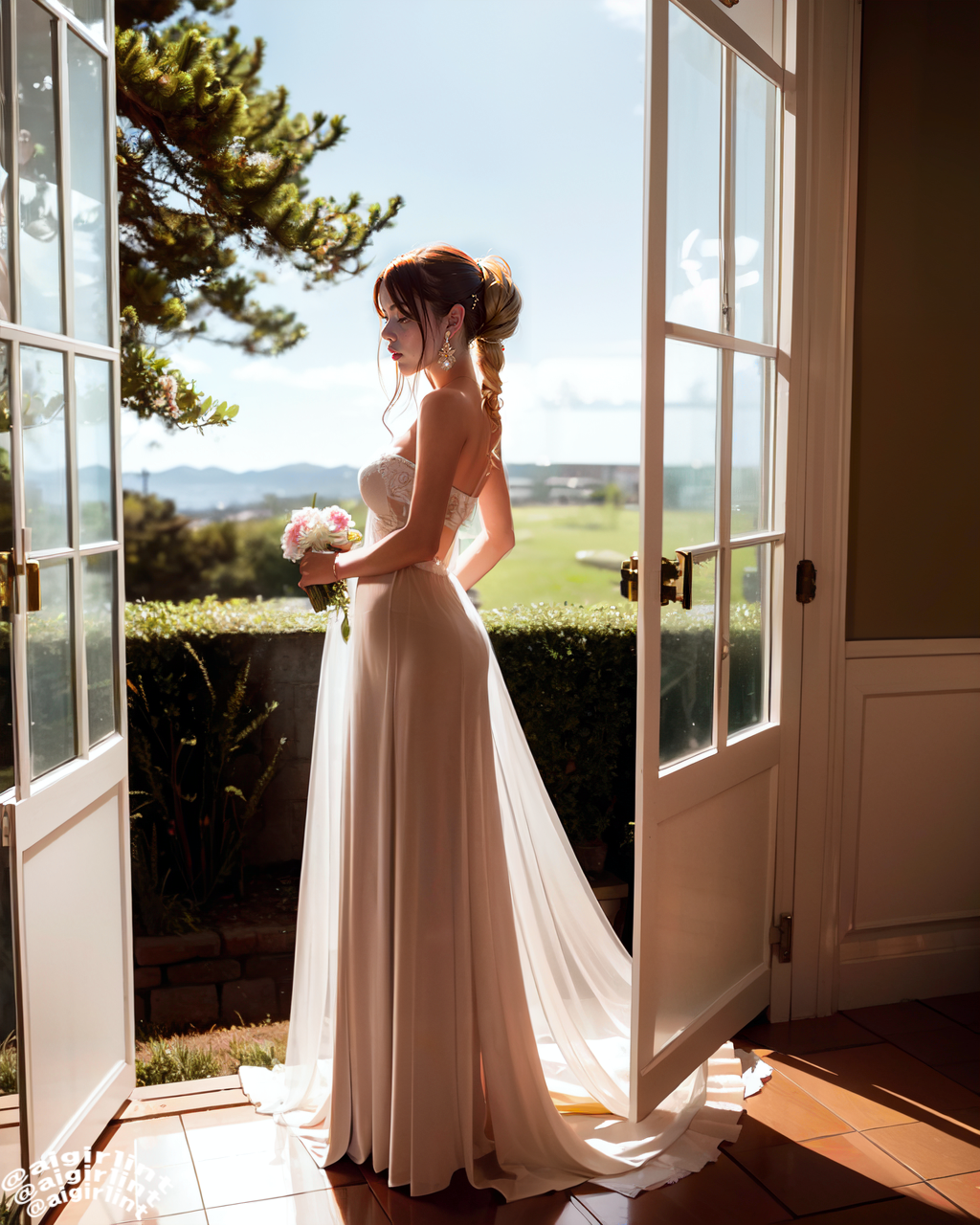 In the Art Museum's halls, A vision of beauty enthralls Her Alexandre Vauthier dress A masterpiece, one must confess Intricate lace and flowing skirt A true goddess, she does assert Her hair styled in a loose braid A dreamy vibe, the scene conveyed With shallow depth of field so fair And sentimental pose to spare Romantic and enchanting, yes A scene from a fairy tale, no less Oh, Art Museums, where beauty lies And the soul soars to the skies Thanks for this moment, dear goddess In our memories, forever flawless.