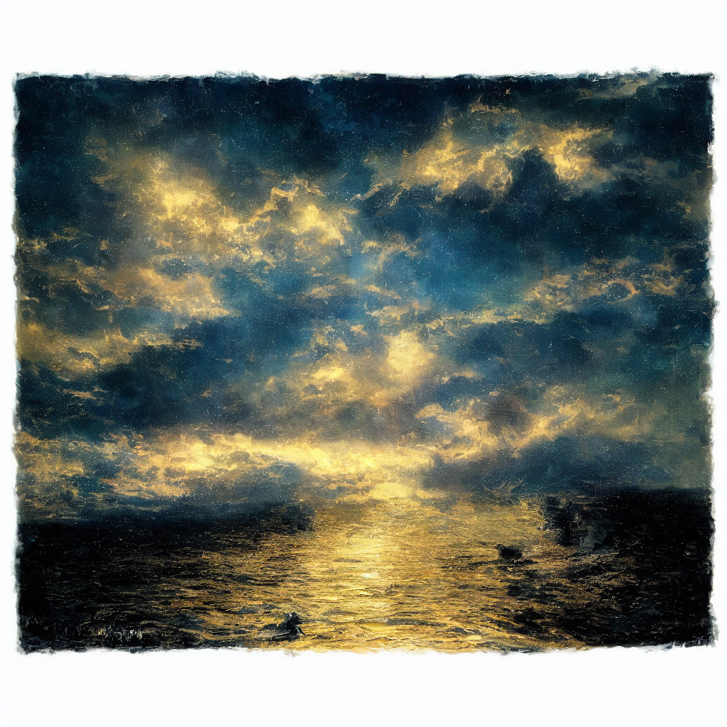 ChatGPT : Describe night sky seen from the water in more than 100 words with his author's imagination.