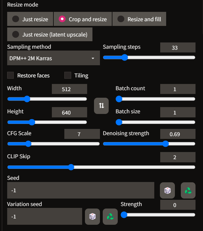 이제 이미지를 img2img로 넘겨서 세팅을 해봅시다. prompt는 t2i에서 생성한 그대로 가져왔습니다. 디노이징은 0.60 이상으로 줍니다.