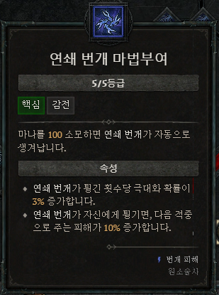 - 핵심 : 연쇄 번개 5, 강화된 연쇄 번개, 상급 연쇄 번개