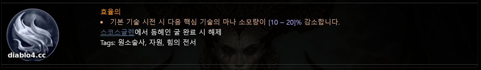 재충전의 위상과 마찬가지로 원소술사의 마나를 효율적으로 관리할 수 있도록 보조해 주는 위상입니다. 기본 기술 시전 후 다음 핵심 스킬의 마나 소모량이 감소하므로 기본과 핵심스킬을 적절하게 보조를 맞춰 사용하면 됩니다.