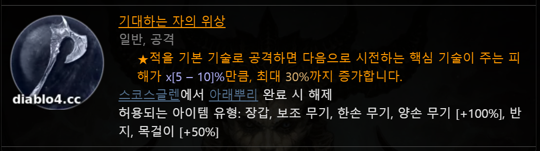 양손 무기에 적용하면 100%의 효과를 발휘할 수 있으나 초반에는 무기가 자주 바뀌기 때문에 목걸이에 적용을 하다가 나중에 좋은 양손 무기가 나오면 위상을 적용시켜 줍니다.