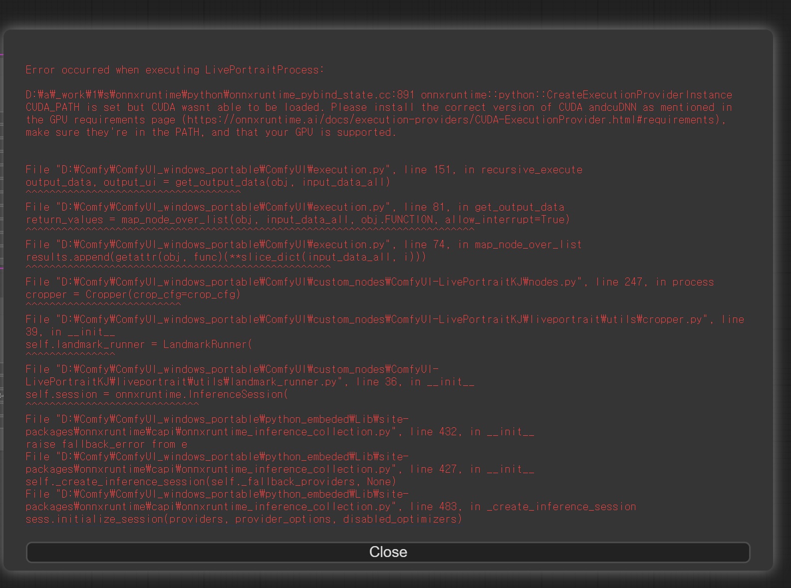 그 중에 한가지 ComFyUI에서 LivePortrait 설치시 발생하는 오류에 대해 해결하는 방법을 안내드리고자 합니다.