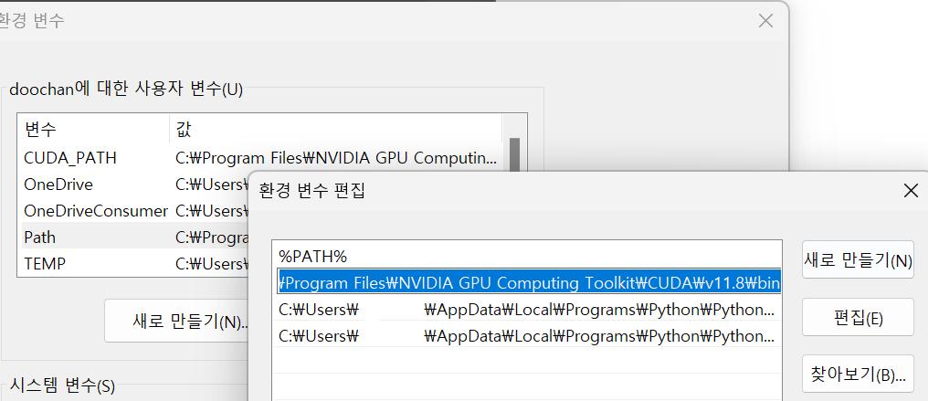 cuDNN의 bin, include, lib 디렉토리를 CUDA 설치 경로에 복사합니다. 그런 다음 cudnn64_8.dll이 있는 경로를 PATH에 추가합니다: