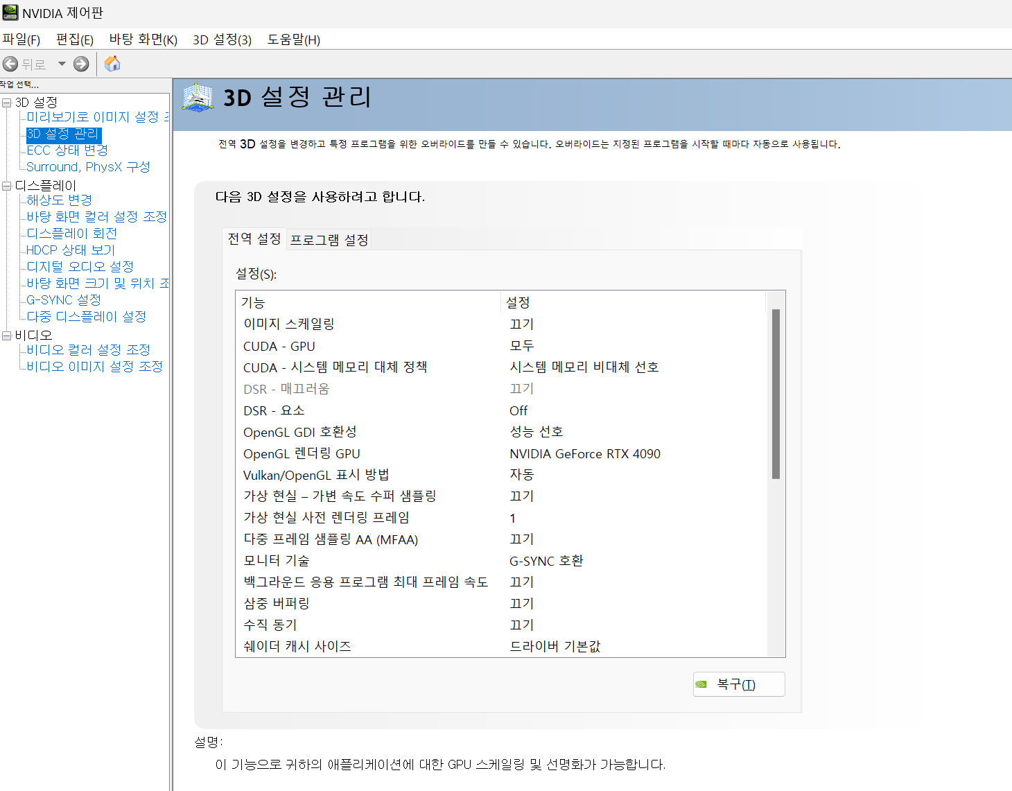 주요 설정: NVIDIA 제어판 최적화