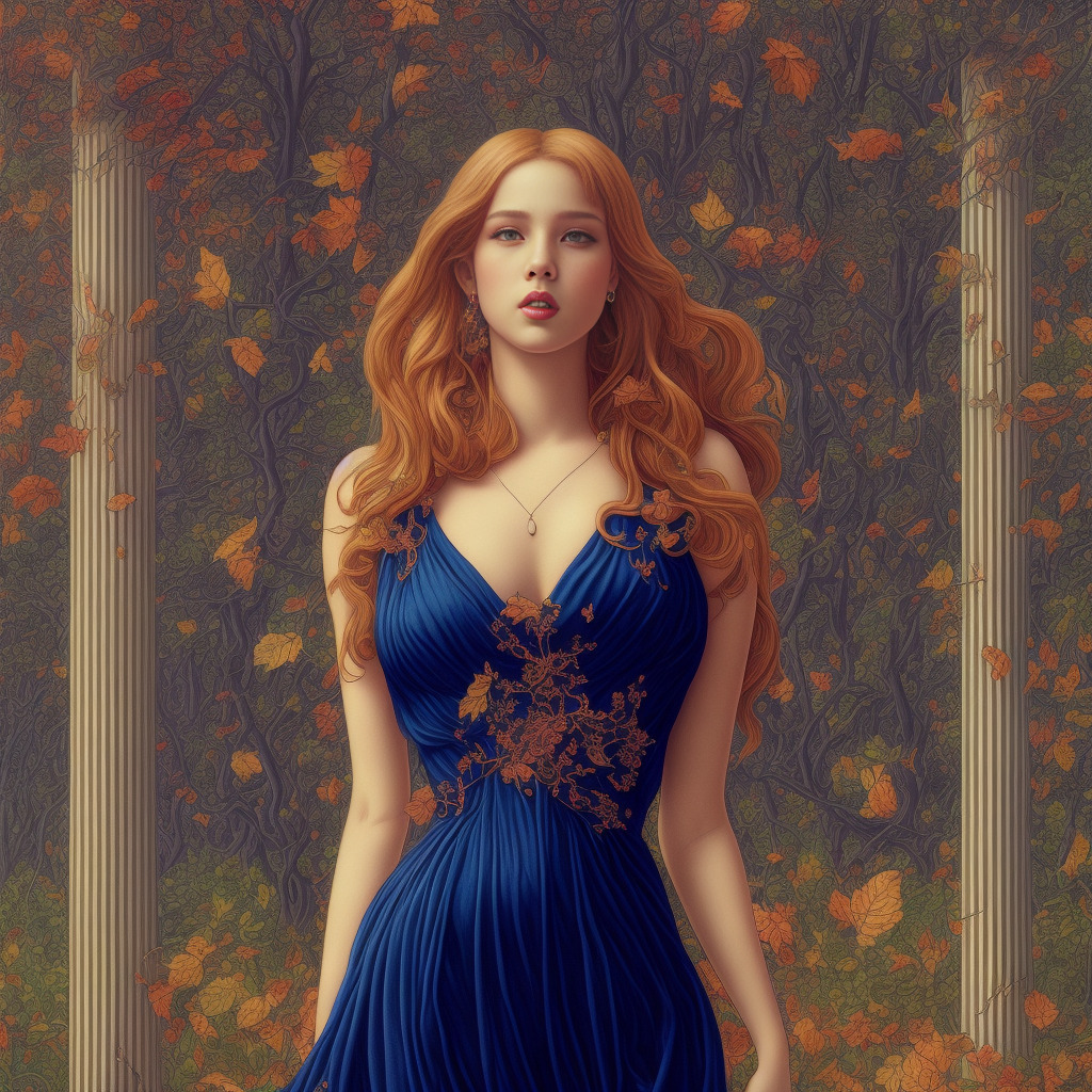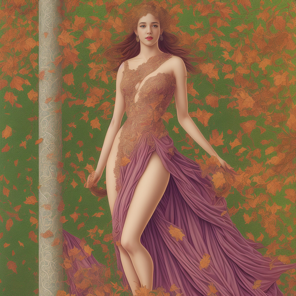 Prompt : fullbody, blackpink in art-nouveau style. Falling leaves and greek column background; 200mm portrait, ISO 600, smiling, by Virgil Finlay, sci-fi, colors, Detailed line art.