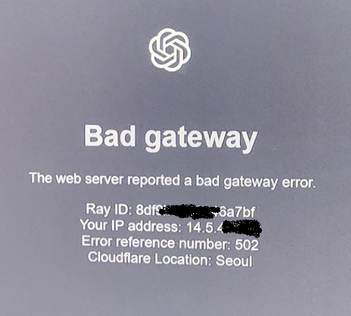 chat GPT : Bad gateway 502