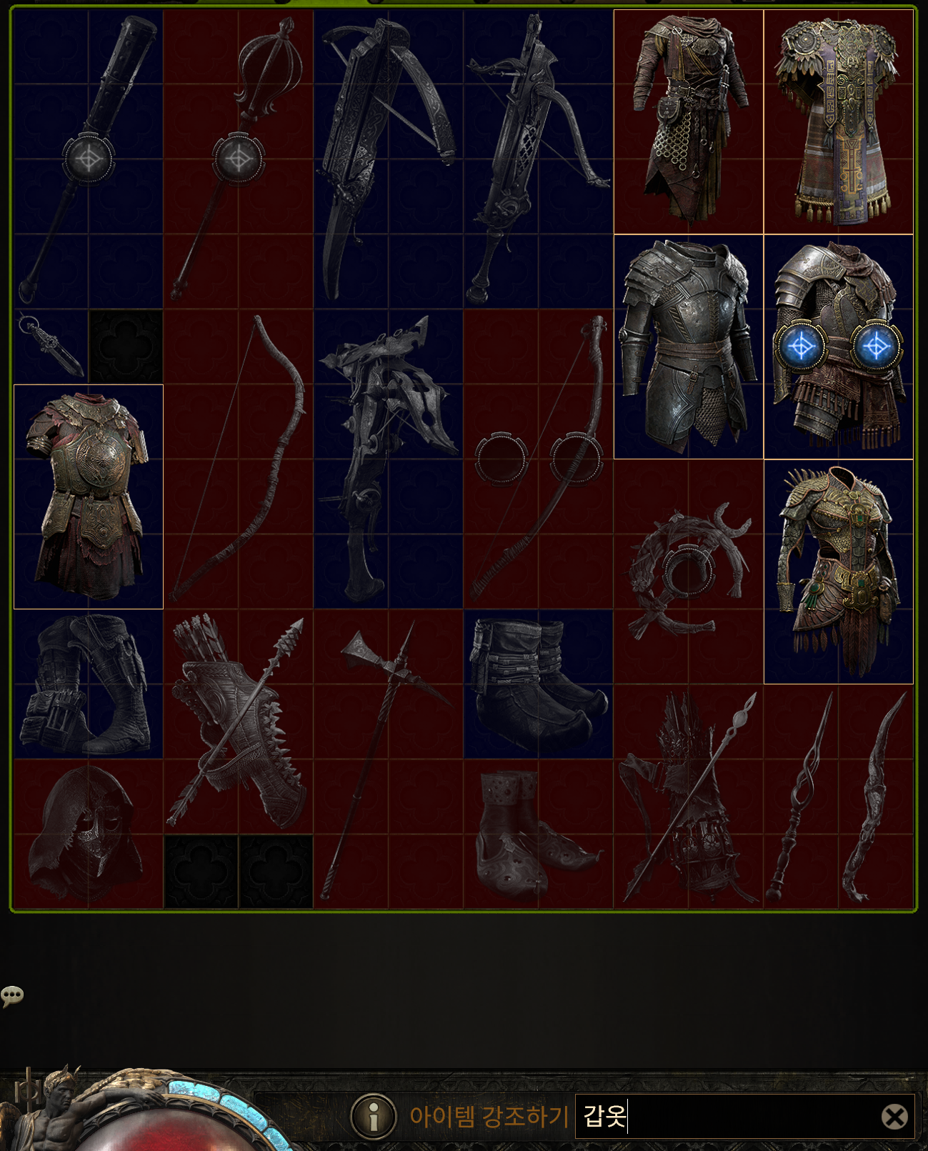 보관함에서 Ctrl+f 로 갑옷을 입력하면 갑옷만 하이라이트 되어 알아보기 쉽다!