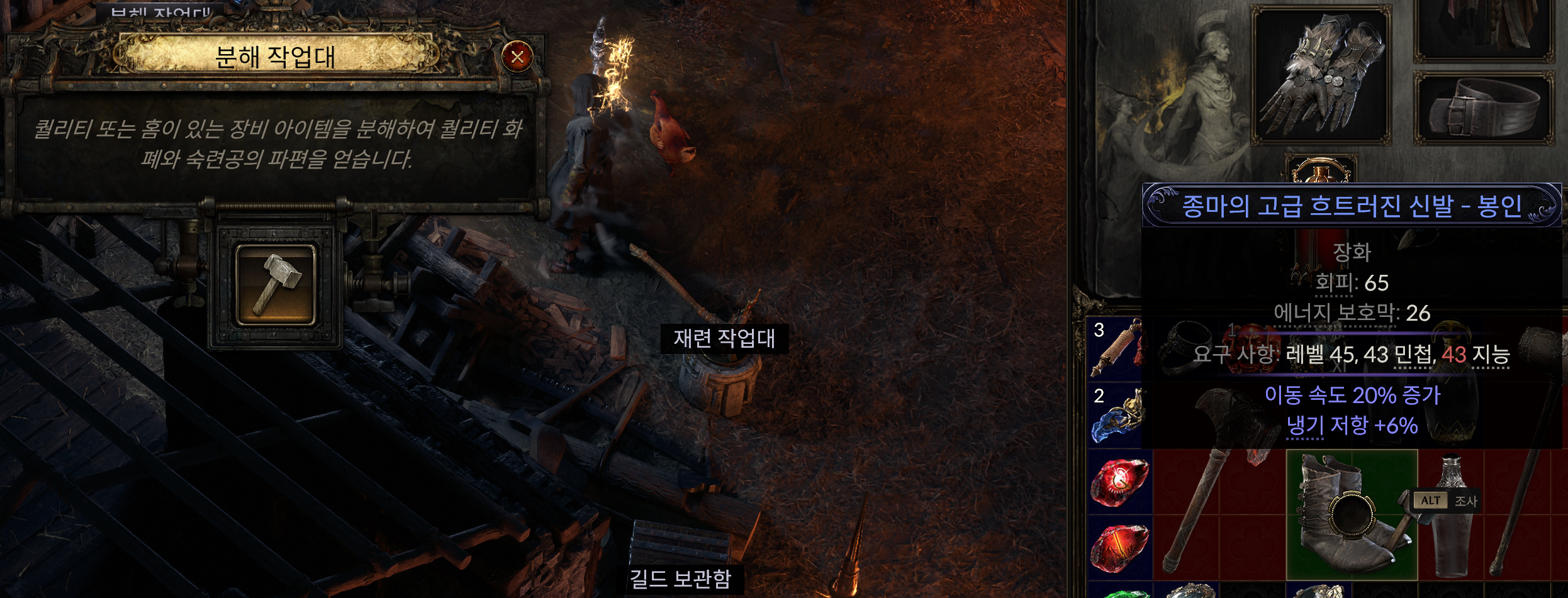 분해 작업대를 통해 소켓템이나 퀄리티아이템을 분해하여 나온 재료로 내 장비를 강화하자!