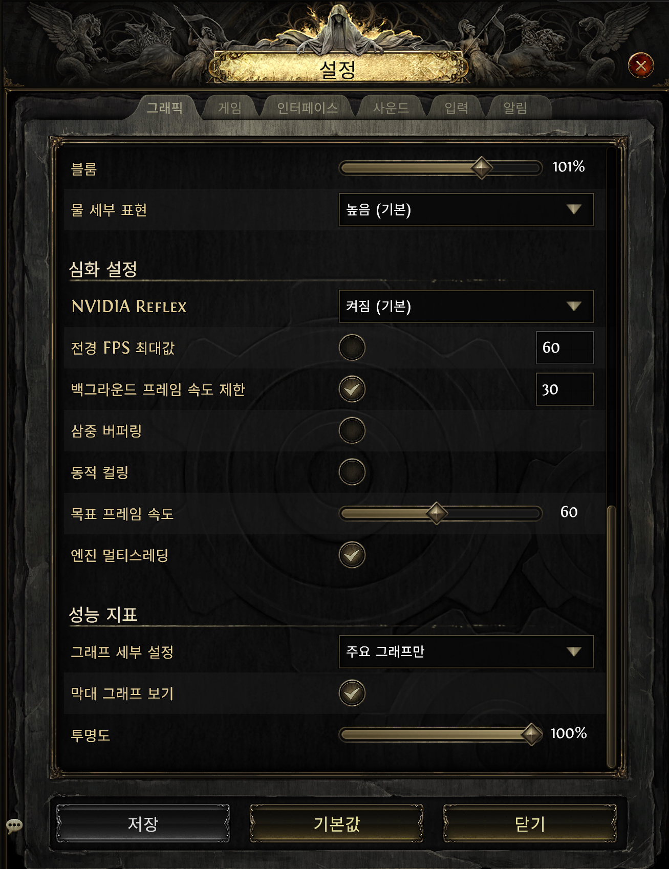 - 그 외의 세부 옵션은 시스템 성능을 체크하면서 조정해 보세요.