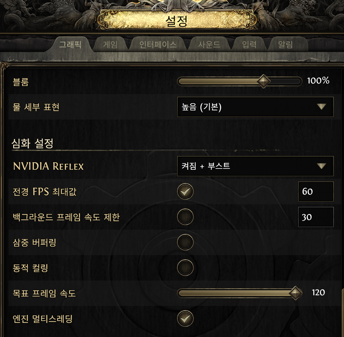 - 게임 설정에서 '엔진 멀티스레딩' 옵션을 꺼서 CPU 부하를 줄입니다.