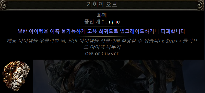 아래는 기회의 오브를 사용하여 고유 아이템으로 변환될 가능성이 높은 일반 아이템들과 관련 정보입니다:
