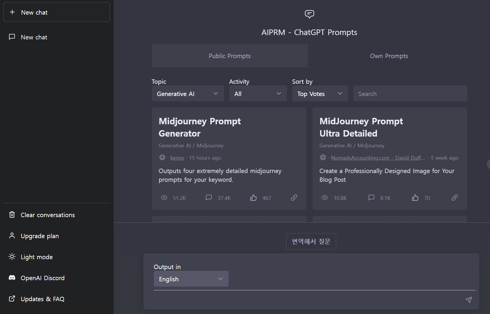 chatGPT 및 크롬 확장 프로그램 'AIPRM for chatGPT' 를 이용하면 더 쉽게 Prompt를 추출 및 선택할 수 있는 방법이 있어 소개하고자 합니다.