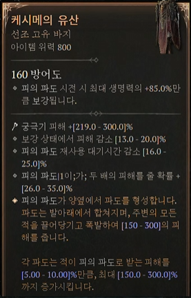 - 고유 전설 위상: 암흑 피의 파도 성능 강화. (빌드 플래너 참고: https://d4builds.gg/builds/95a62814-895f-4bb0-96c3-87e8b7f23a0e/?var=0)