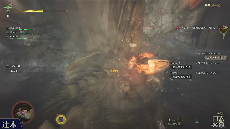 - 츠지모토 프로듀서와 활, 한손검, 조충곤을 든 헌터들이 협력하여 사냥에 성공했습니다.