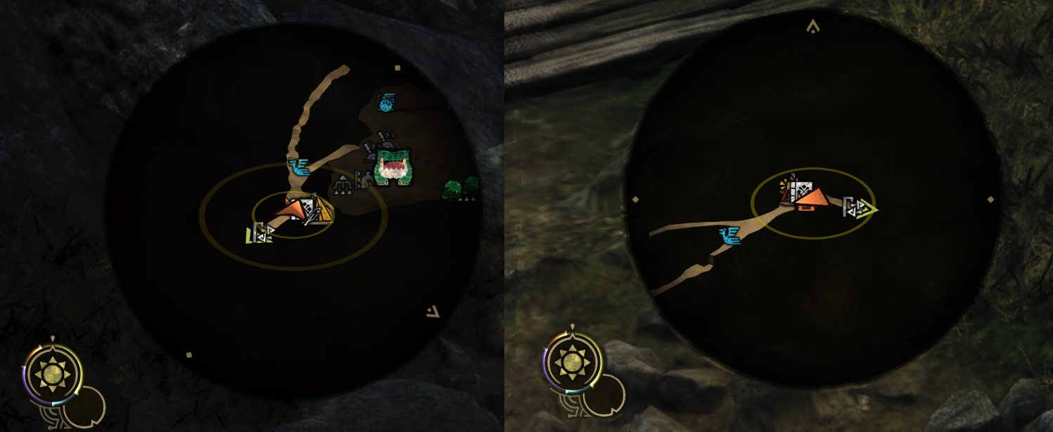 - 록온 옵션 (카메라 탭 2페이지): 몬스터 위치를 빠르게 파악하는 데 유용하지만, 미세 조준이 어렵거나 타겟팅이 강제로 해제될 수 있음.