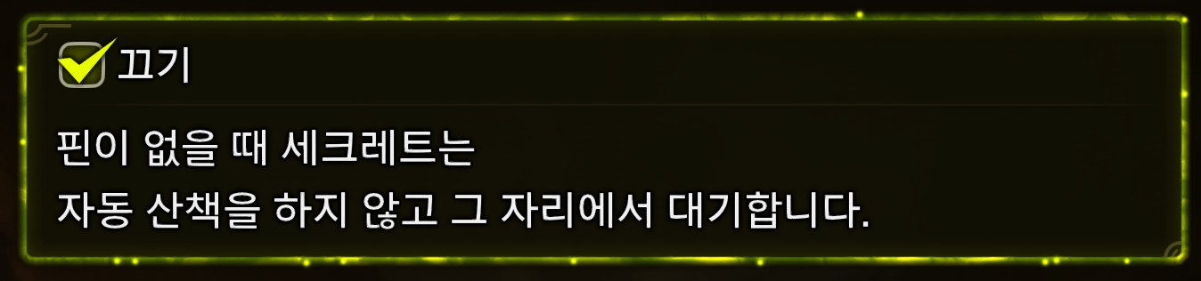- 세크레트가 자동으로 돌아다니는 기능을 비활성화하여 의도치 않은 움직임을 방지.