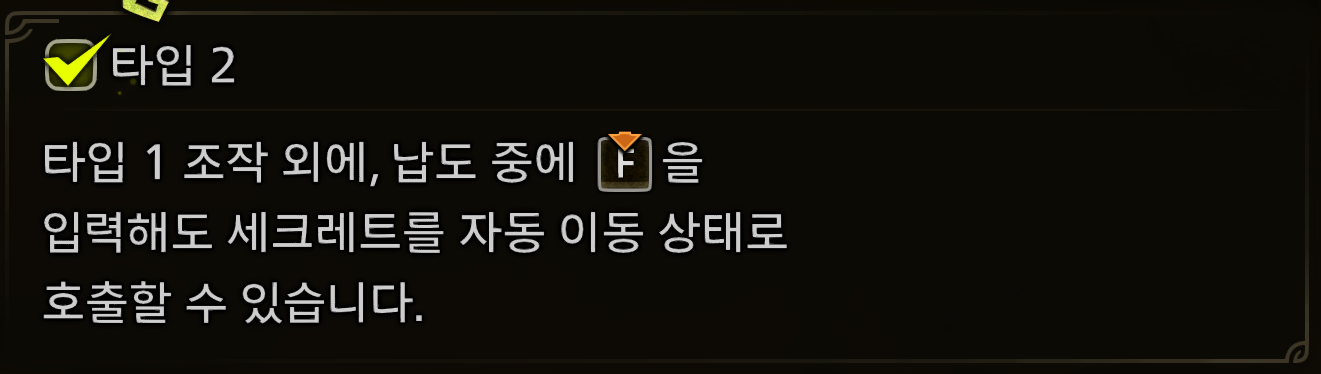 - 키보드 유저는 F 키 꾹 누름, 게임패드 유저는 B 버튼 꾹 누름으로 세크레트 호출 가능하도록 변경.