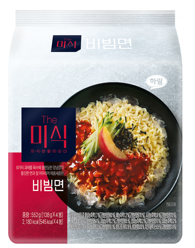 - 하림 더미식 비빔면: 프리미엄 시장을 겨냥해 개발된 제품으로, 10여 가지 과일과 채소를 블렌딩해 소스를 완성했습니다. 깊은 감칠맛과 자연스러운 단맛을 강조하며, 메밀 함량이 일부 포함된 면으로 건강을 고려했습니다. 고급화된 포장과 광고 전략으로 소비자에게 다가가고 있습니다.
