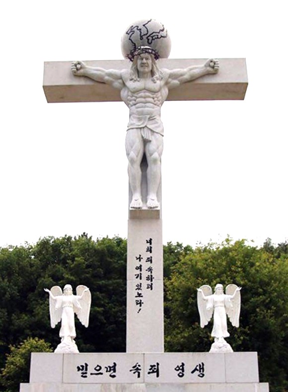 - Geekologie: "Damn Bro, You Lift? Korean Buff Jesus Crucifixion Statue"