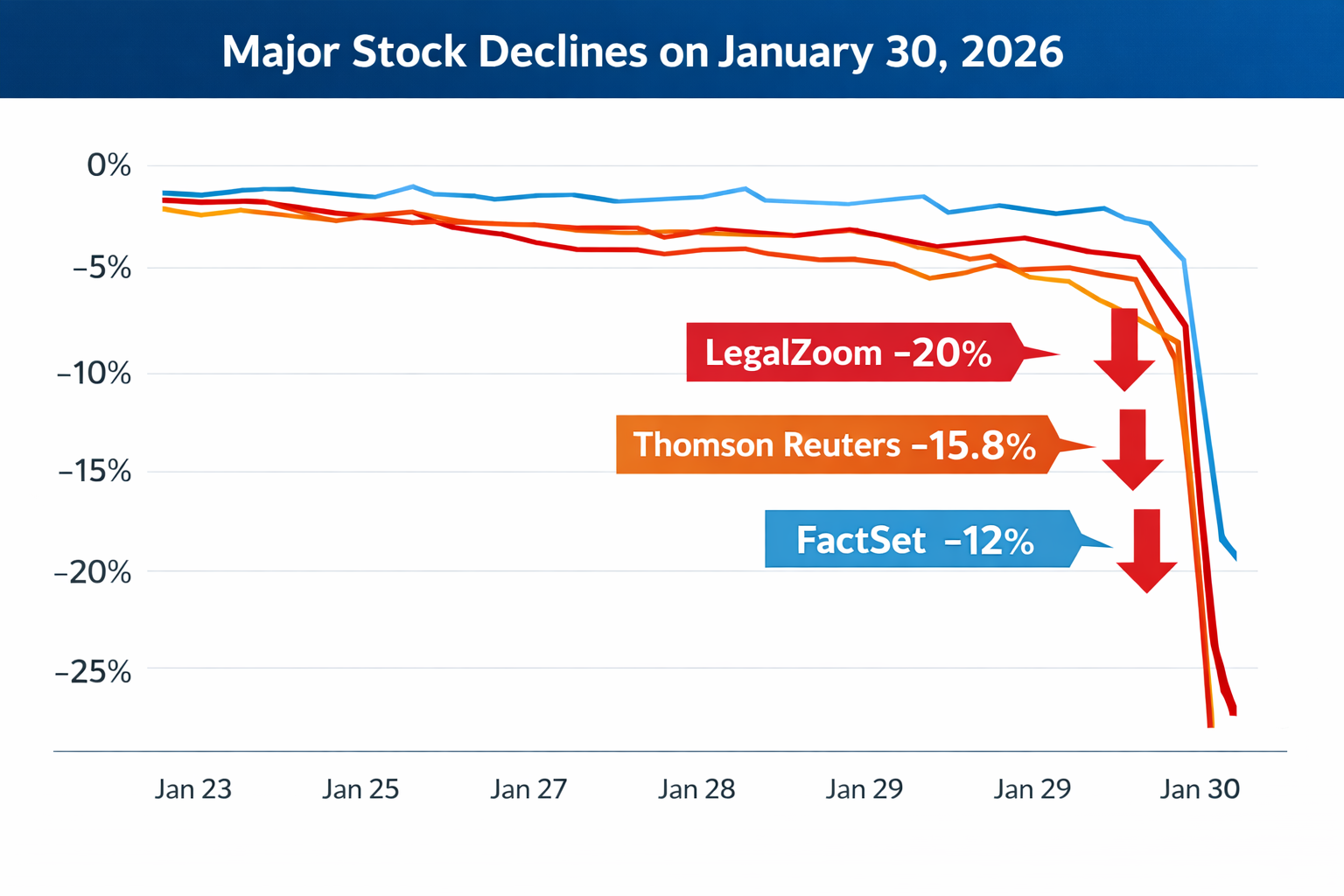 금요일 오전. 미국 법률 소프트웨어 기업 LegalZoom 주가가 하루 만에 20% 폭락했다. Thomson Reuters는 15.8% 급락. 금융 데이터 회사 FactSet도 두 자릿수 하락.