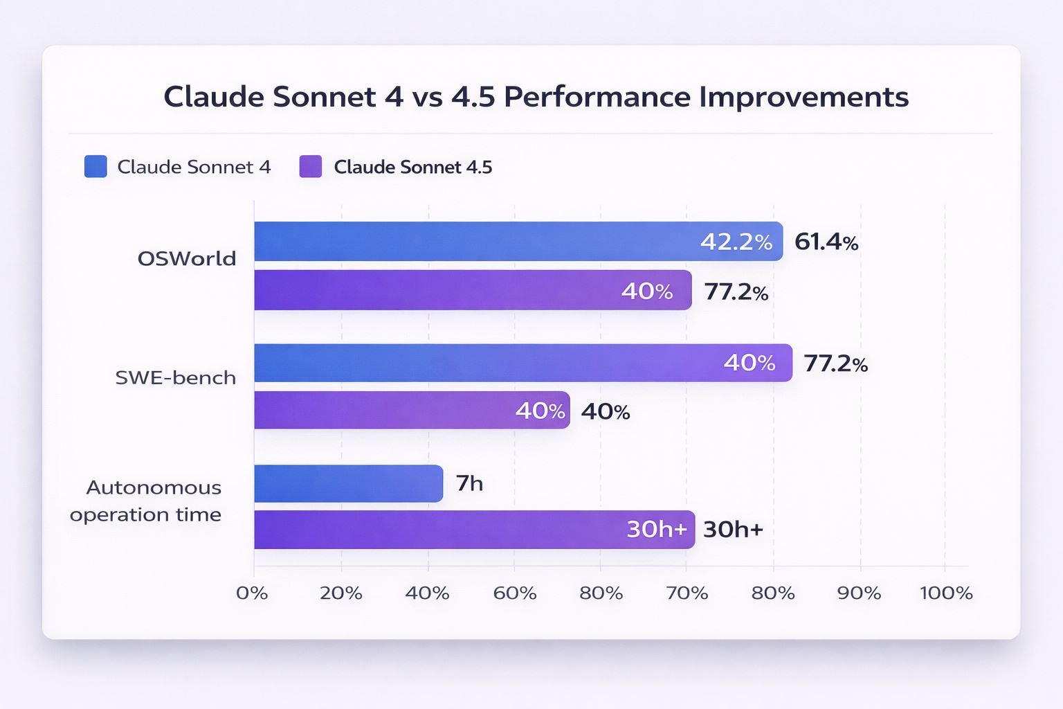 | 벤치마크 | 소넷 4 | 소넷 4.5 | 향상률 |