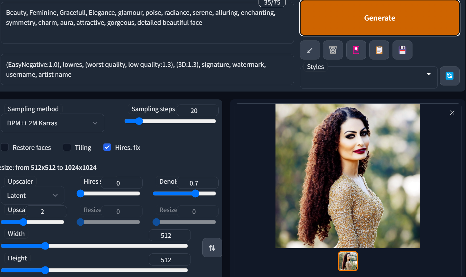 2) Hires. fix : 고화질 사진을 뽑으려면 무조건 선택입니다.