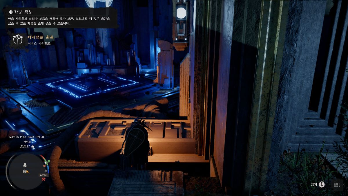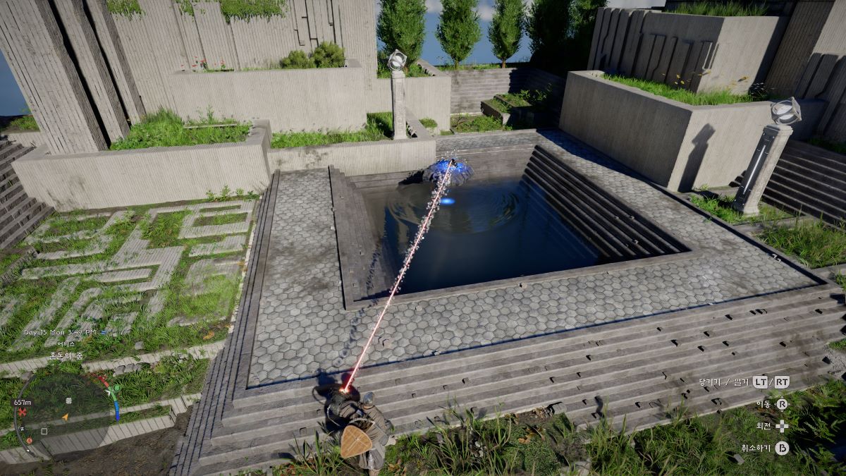 💡 핵심 팁: 점프 후 지정타가 아니다. 반드시 앉은 상태에서 지정타 프롬프트가 표시될 때 사용해야 한다. 방향을 기판 쪽으로 정확히 잡아주는 것이 성공률을 높이는 포인트다.