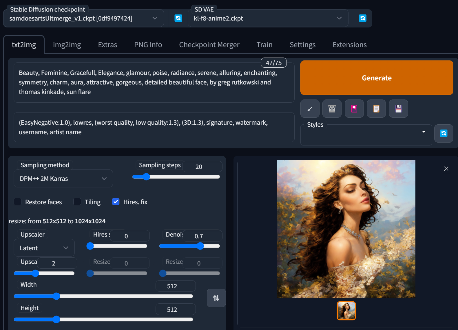 2) Hires. fix : 고화질 사진을 뽑으려면 무조건 선택입니다.