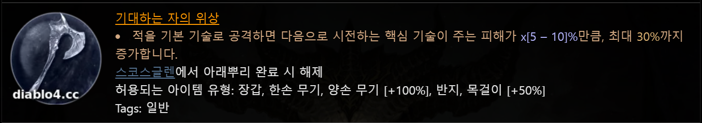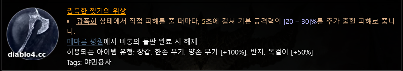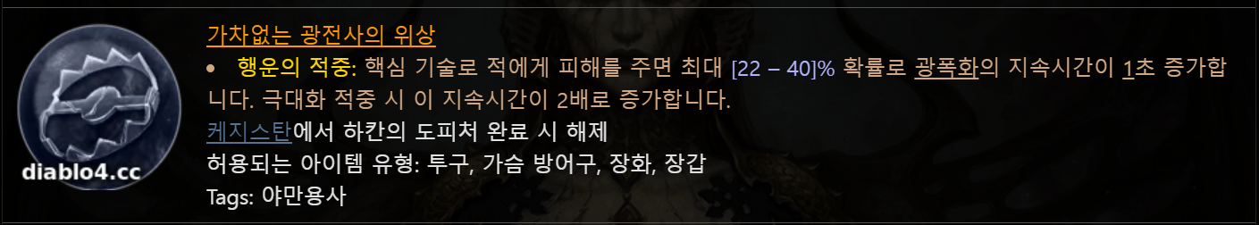 공용 위상으로 모든 직업의 캐릭터에게 좋은 위상으로 야만용사에게도 초반에 큰 도움이 됩니다.