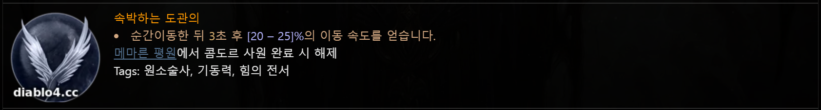 순간이동 스킬을 강화해 주는 스킬로 소서리스에게 전투 시 생존력과 캠페인 진행 중 맵 이동시 이속이 느리면 답답할 수 있는 부분을 해소시켜 줄 수 있는 위상입니다. 오픈 초반은 빠른 렙업이 가장 중요합니다!