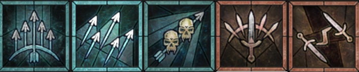 기본 스킬 : 구멍 뚫기, 심장추적자, 강력한 화살, 원기의 일격, 칼날 차원 이동