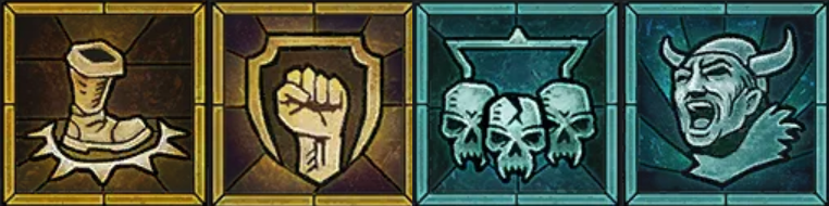 발차기, 도약, 돌진 등 전투에서 야만용사에게 유리하게 싸울 수 있도록 보조하는 스킬들입니다.