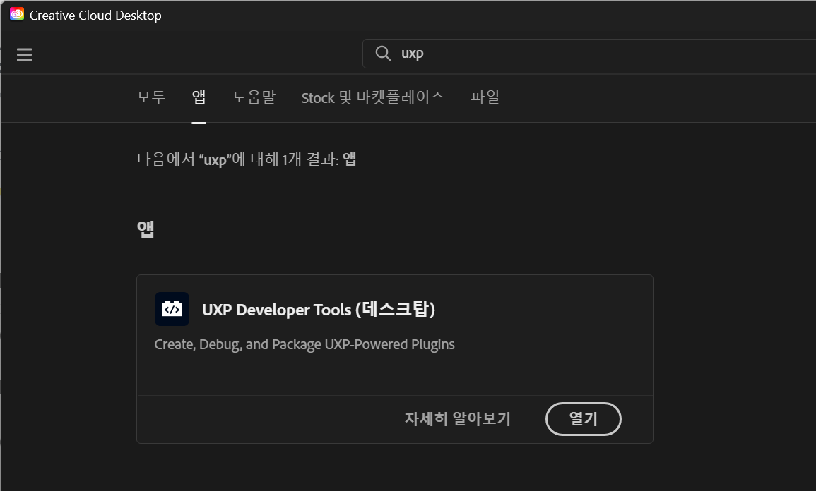 3) Creative Cloud desktop 앱을 실행시켜서 Adobe UXP 개발자 도구를 설치하고 실행합니다.