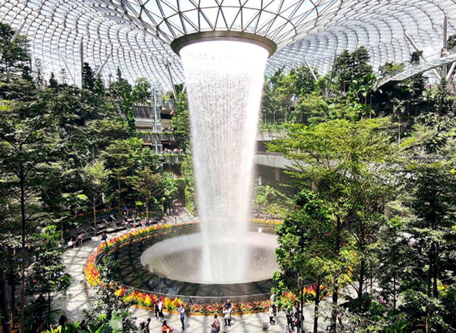 - 냄새: 공항 내의 정원 덕분에 싱그러운 나무 향과 습기 찬 공기의 냄새가 조화를 이룸.
