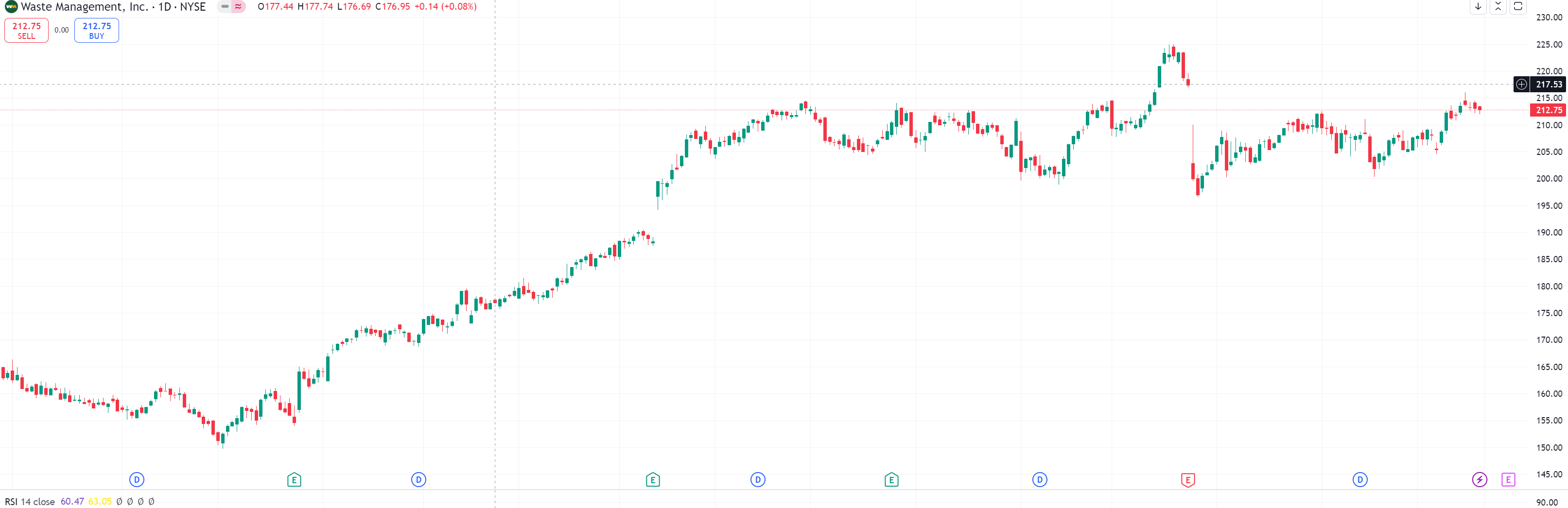 Waste Management는 필수적인 환경 서비스 분야에서 강력한 성장 잠재력을 가지고 있으며, 특히 재생 에너지 및 재활용 분야의 확장은 미래 성장을 가속화할 수 있는 중요한 요소입니다. 현재 가격이 다소 높게 형성되어 있지만, 장기적인 관점에서 안정적인 배당주로서의 매력이 큽니다. 여러분도 환경과 지속 가능성에 관심이 많으시다면, WM은 주목해 볼 만한 주식일 것입니다.