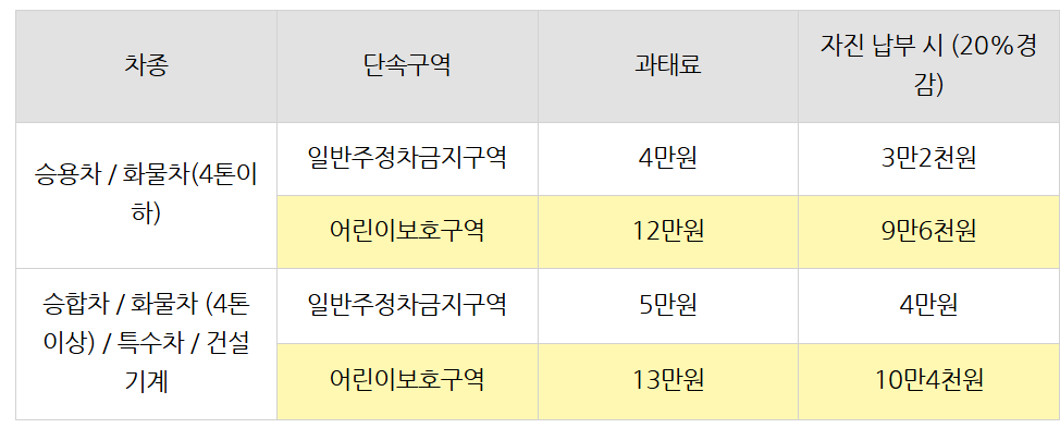 불법 주정차 차량의 보험료 인상 여부 (어린이 보호구역 포함)