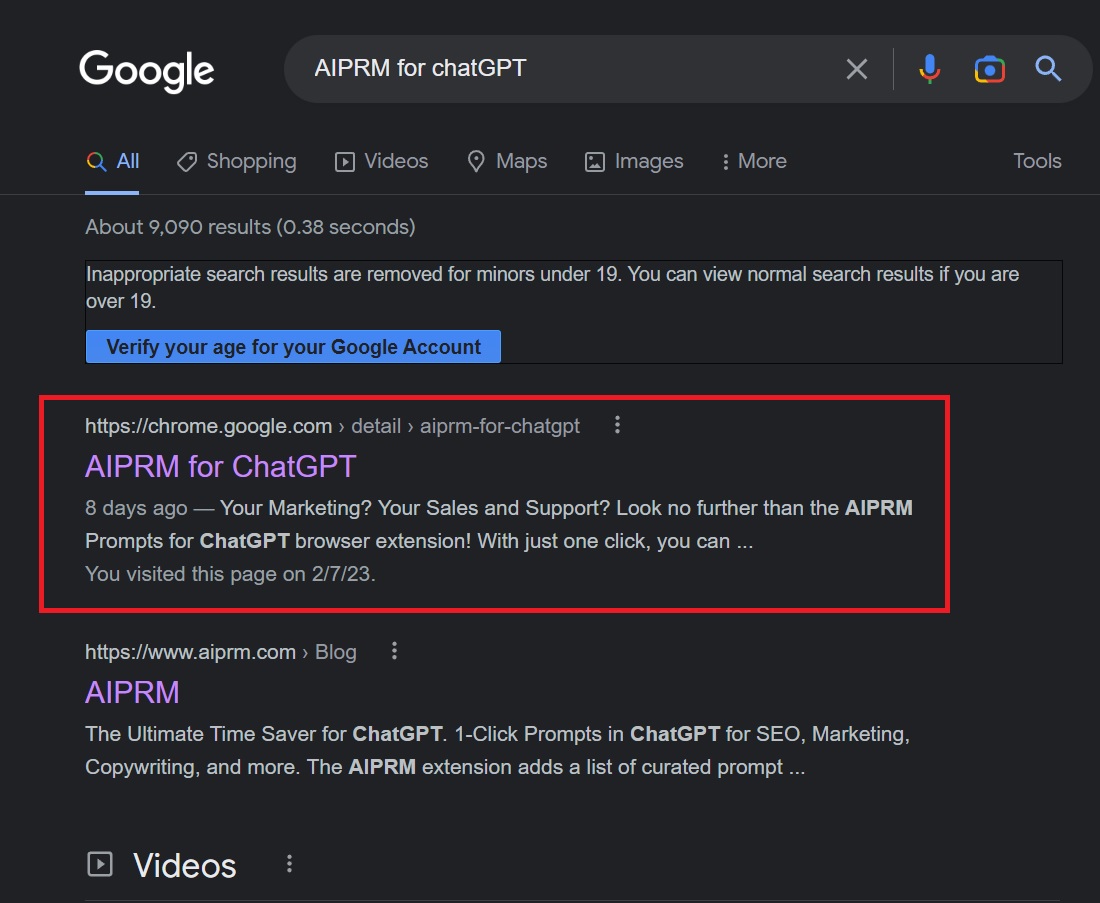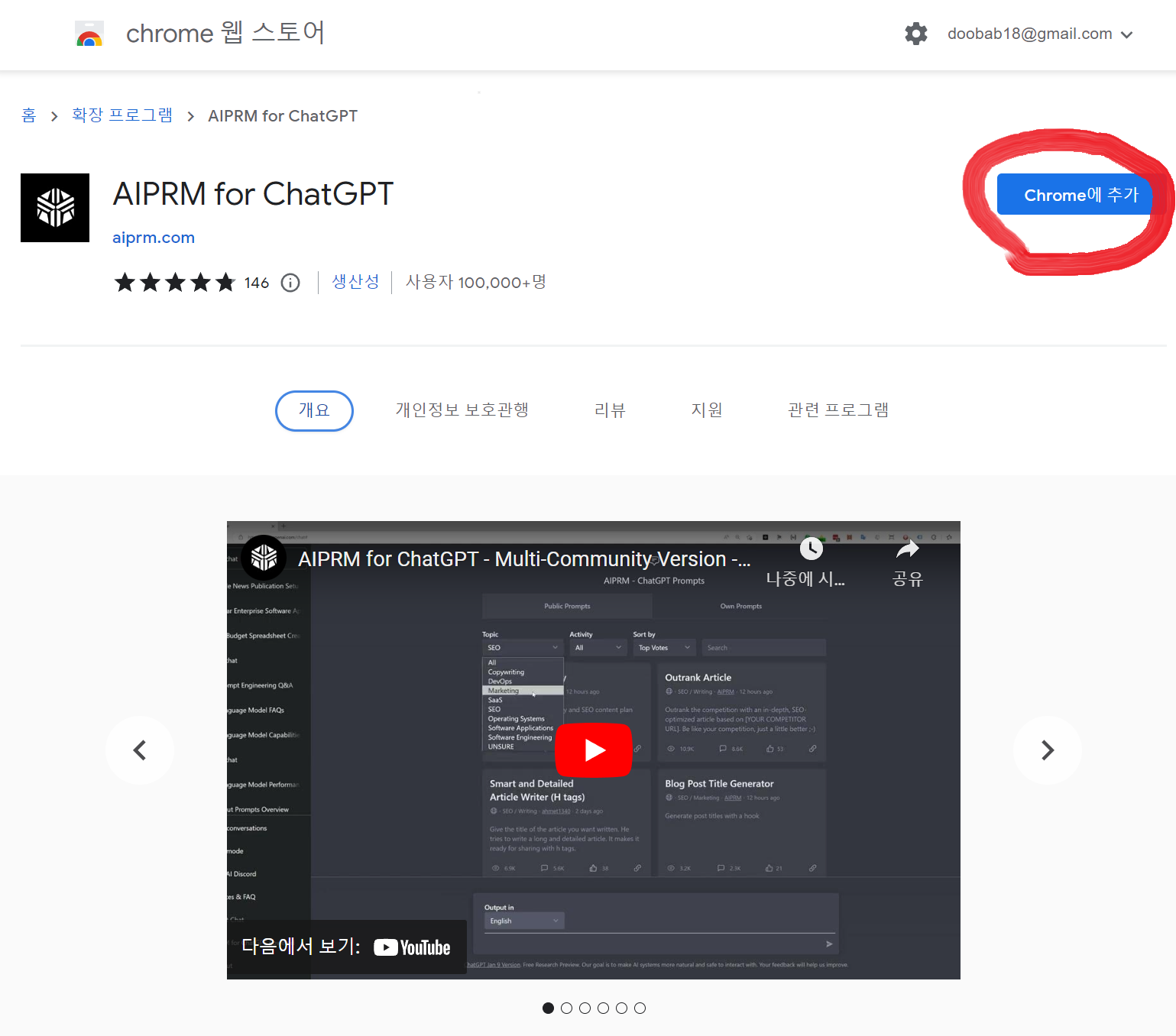 2. 'AIPRM for chatGPT' 확장 앱을 Chrome에 추가