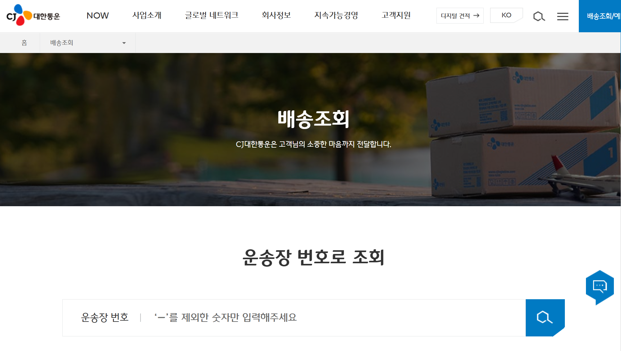 - CJ대한통운 홈페이지 또는 앱에서 운송장 번호 조회
