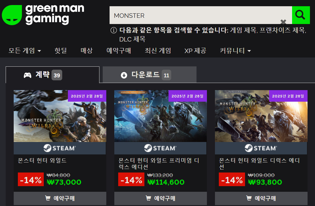 3. Green Man Gaming에서 몬스터 헌터 와일즈 구매 방법