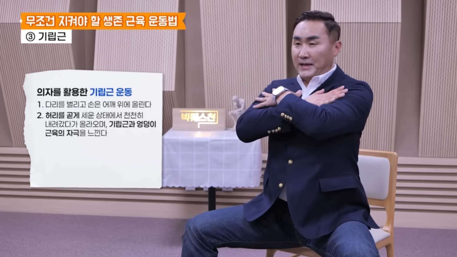 - 엉덩이 근육 – 의자 활용 스쿼트