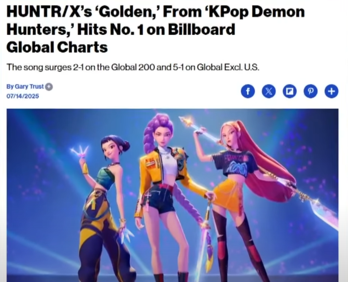 2025년 7월, 전 세계가 '케이팝 데몬 헌터스'(이하 케데헌)에 열광하고 있습니다. 넷플릭스 애니메이션 속 가상 K-pop 걸그룹 '헌트릭스'가 부른 '골든'이 빌보드 글로벌 차트 1위를 기록하며 가상 아티스트 최초의 기록을 세웠는데요. 이들을 둘러싼 팬덤 문화는 기존 K-pop 팬덤과는 완전히 다른 양상을 보이고 있습니다.