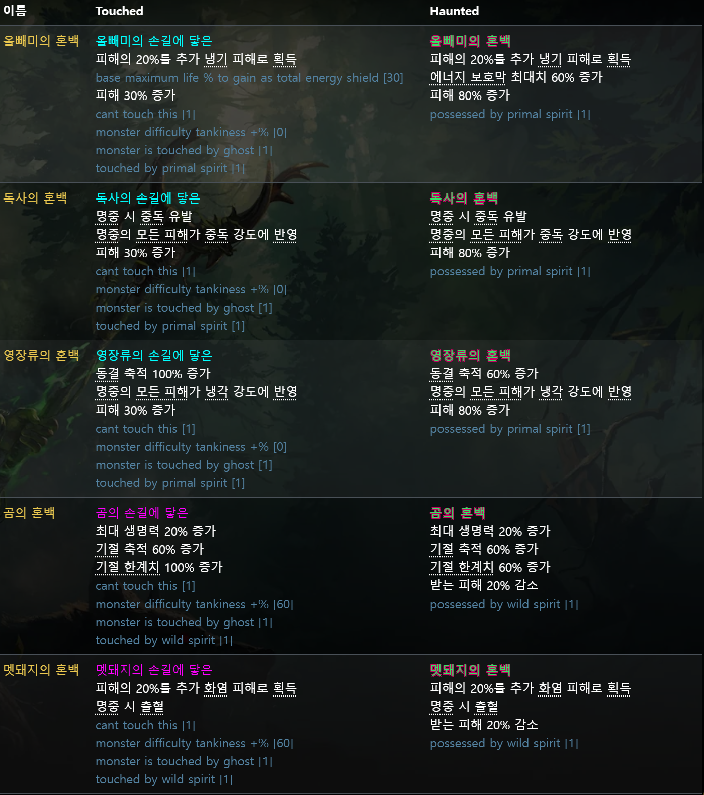 [혼백 종류별 효과 및 성능 : poe2db.tw]