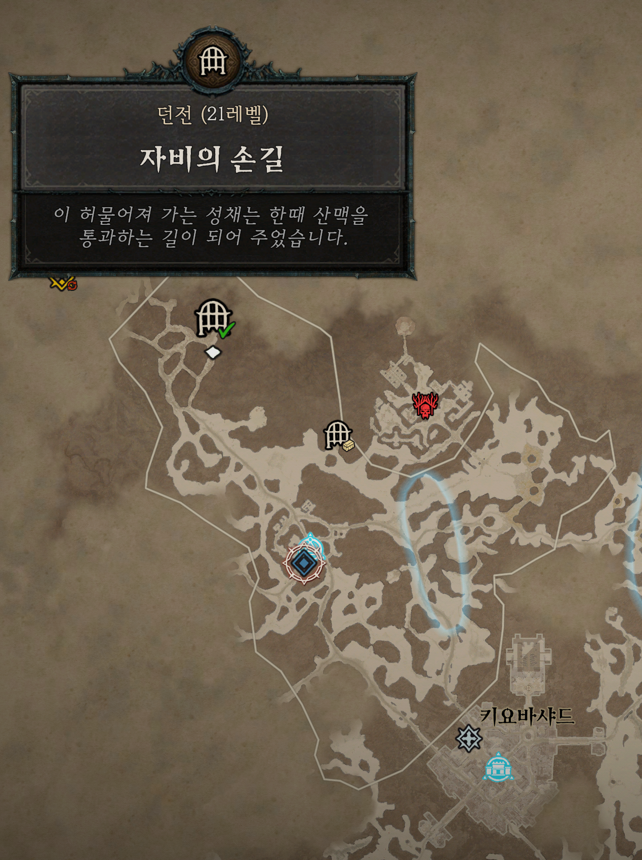 디아블로 4의 맵(Tab)은 사용자 편의를 잘 만들어 놓은 것 같습니다. 초반에 모를 시절에 던전에서 밖으로 나갈 때 포탈을 타고 마을로 가거나 뛰어가기를 했었는데요. 지도를 열고 던전 입구에 있는 아이콘을 클릭하면 바로 이동할 수가 있습니다. (E키를 누르고 던전 나가기 하시면 더 빠르네요)